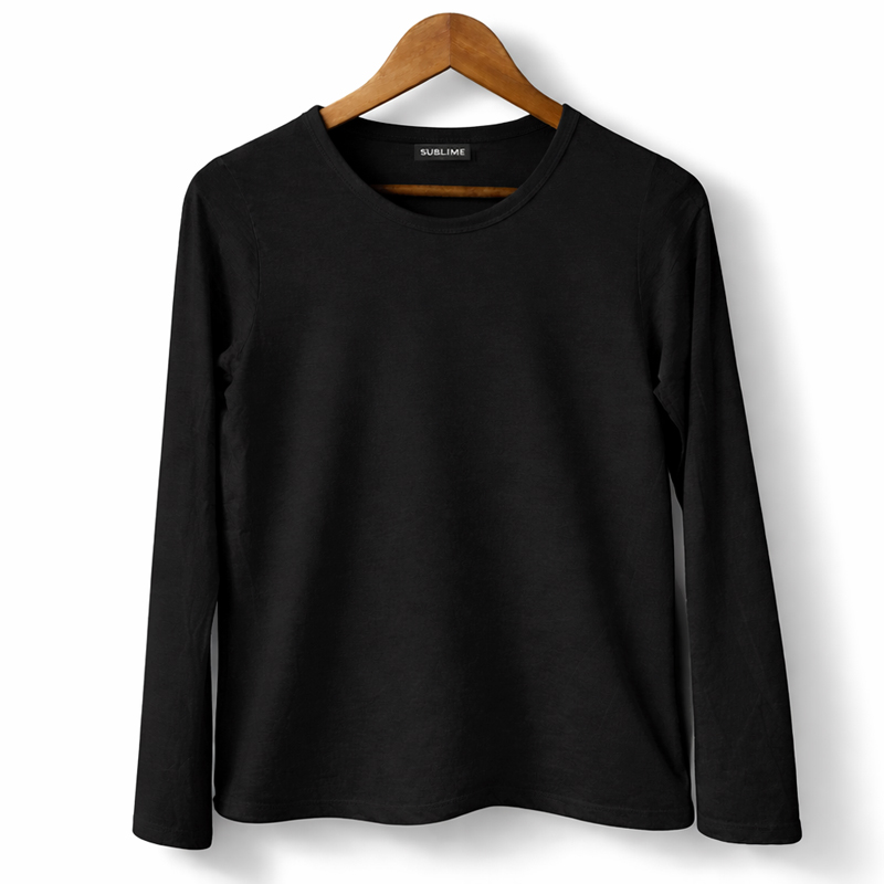 Remera básica confeccionada en tejido de algodón, con cuello redondo y mangas largas.