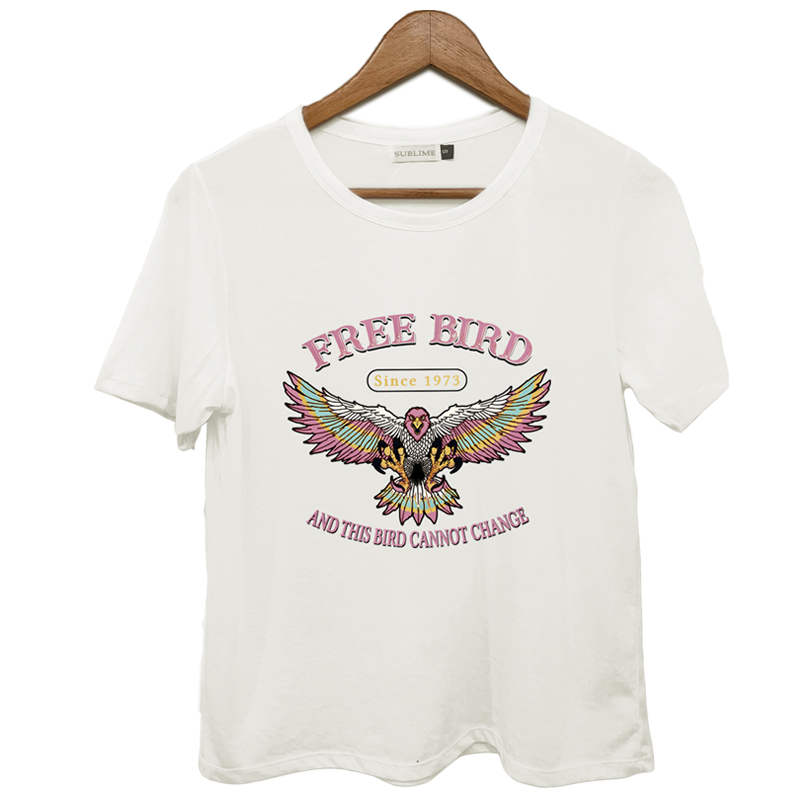 Remera confeccionada en tejido de algodón, con cuello redondo y mangas cortas con estampa.