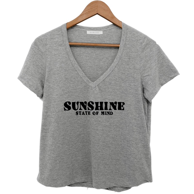 Remera confeccionada en tejido de algodón, con cuello en v y mangas cortas.